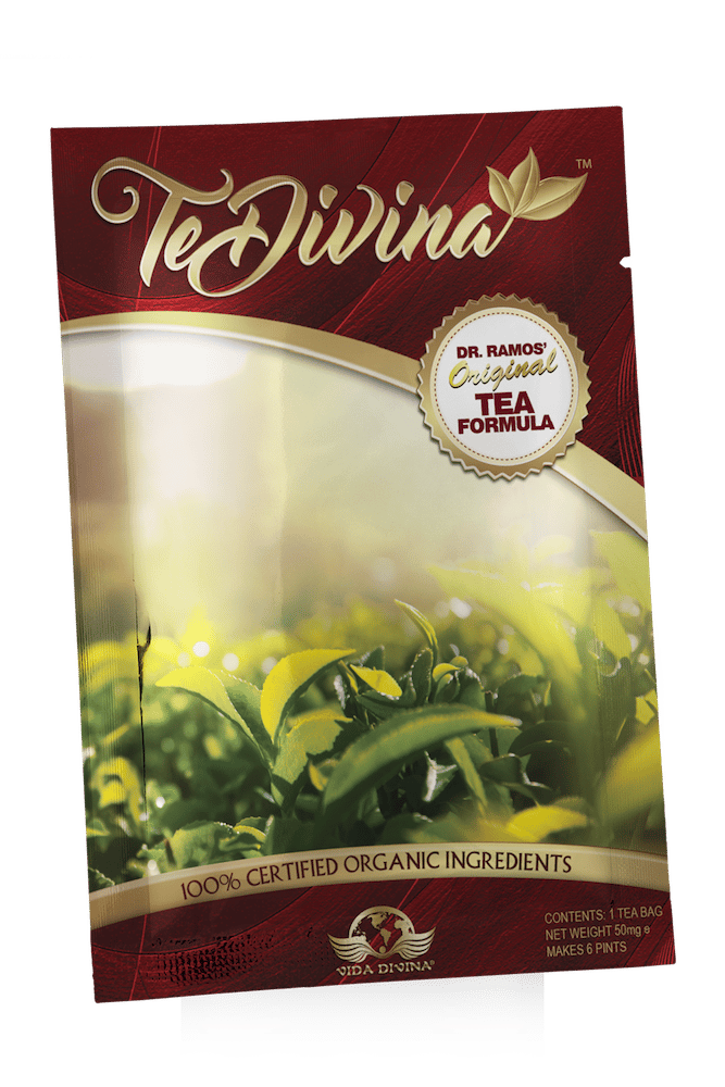 Vida Divina® presents our Flagship product ,formulated to naturally cleanse and detoxify the body.It is infused with 100% Certified Organic Reishi (Gandoderma lucidum) . TeDivina® Dr. Ramos’ Original Tea Formula by its rich amber color tantalizing blend of 12 Certified Organic herbs cleanse your mind and body, creating a foundation for your own Divine Life. It Contains no caffeine.